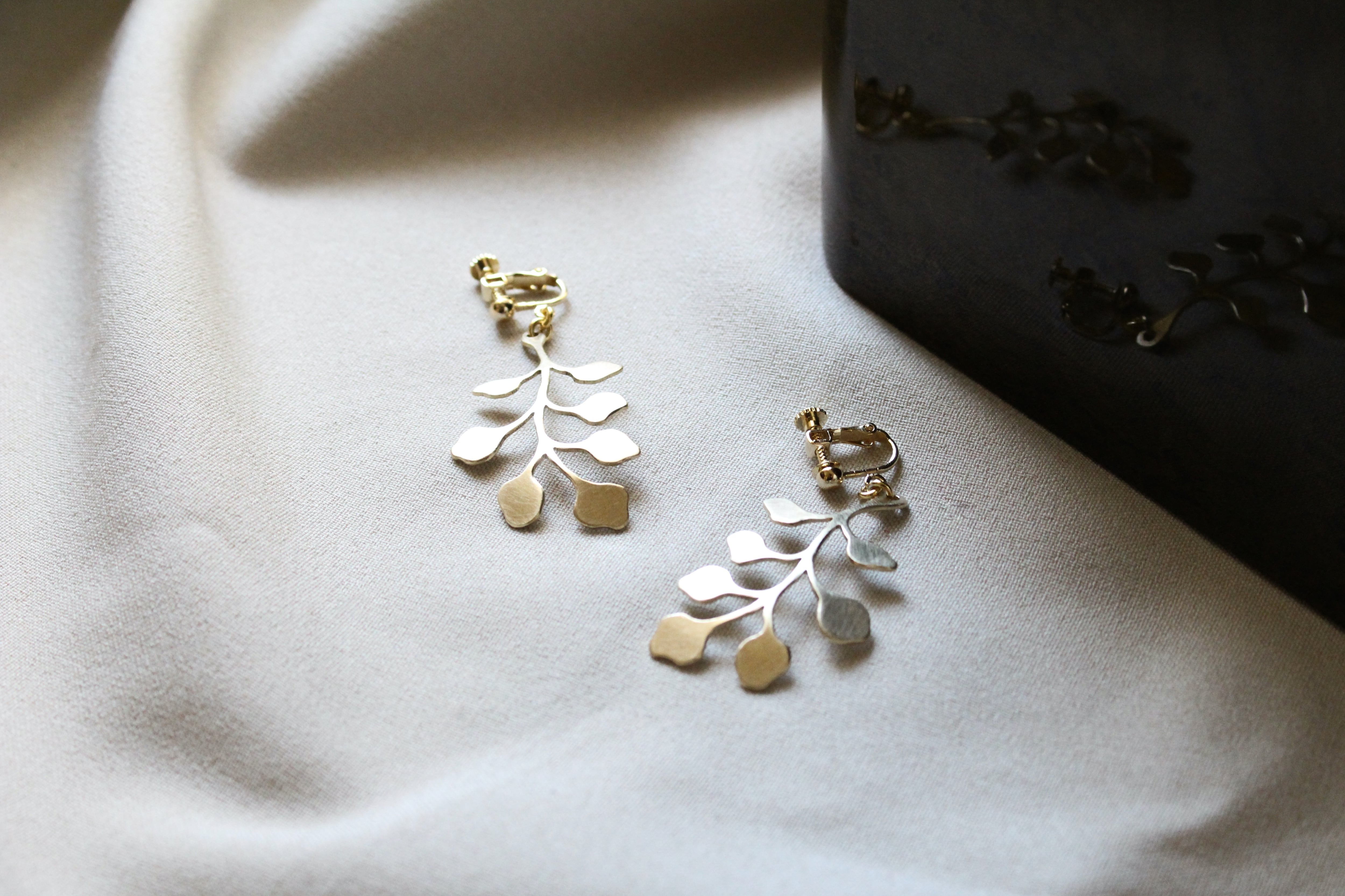 真鍮製のピアス(イヤリング)になります。 (ピアスかイアリング変更可能)